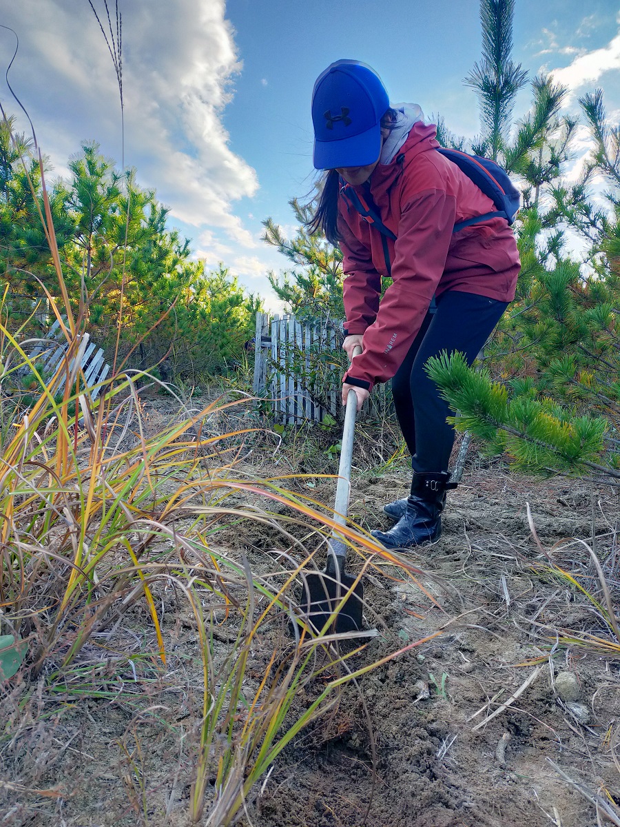 The Coastal Forest Restoration Project was started by OISCA International immediately after the 2011 Great East Japan Earthquake and in cooperation with residents of the disaster-affected areas, local governments, and other supporters, to restore the coastal forest in Natori City, Miyagi Prefecture, which had been devastated. To date, around 370,000 black pine trees have been planted* along the 5-kilometer-long and 200-meter-wide coastline, covering a total area of approximately 100 hectares. The current phase of the project is centered on the care and management of the black pine forest. Our employees have been digging trenches between every few pines, in a grid pattern that facilitates drainage, and also picking up trash in the area.