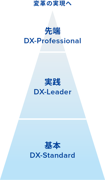 - 全役職員一人ひとりがDXに参画しその成果を仕事や生活で役立てる上で必要となるマインド・スタンス、知識を習得した人材