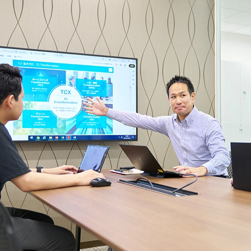 現在は、国内リース事業分野に所属し、大手企業を中心としたセクションを担当しています。日本を代表する有力パートナー企業と、東京センチュリーの強みを活かして、共創ビジネスを創っていくことが命題です。祖業であるリース取引のみならず、サービス・サブスクリプション・共同事業会社設立・事業投資など、銀行法上の規制のない自由なビジネスができる業態であることを活かして、あらゆる手法を用いてパートナーのニーズに応えています。