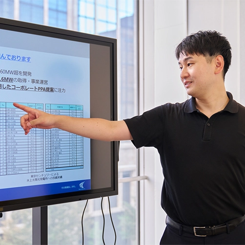 また、個人の成長はもちろん、私の挑戦を通じて、東京センチュリーが再生可能エネルギー業界において「常に先進的な取り組みを行う、なくてはならないプレイヤー」として、社会から認知される存在になることに貢献したいです。