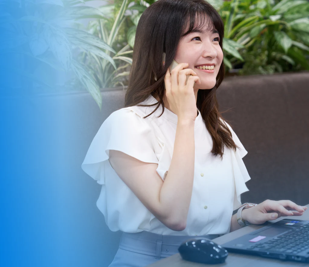 法人営業第一部で営業アシスタントとして、事務作業を中心に営業をサポートしています。具体的には、お客様からの電話応対、見積作成から承認・決裁までにかかる各種申請、契約書類やディーラーへの注文書類の作成から発送、請求業務、支払処理、案件の途上管理など多岐にわたります。また、契約内容などに変更が発生した際の、必要な手続きの確認から変更対応までを担うこともあります。こうした一連の業務を滞りなく進めることで、営業担当者が安心して営業活動に専念できる体制を整えています。