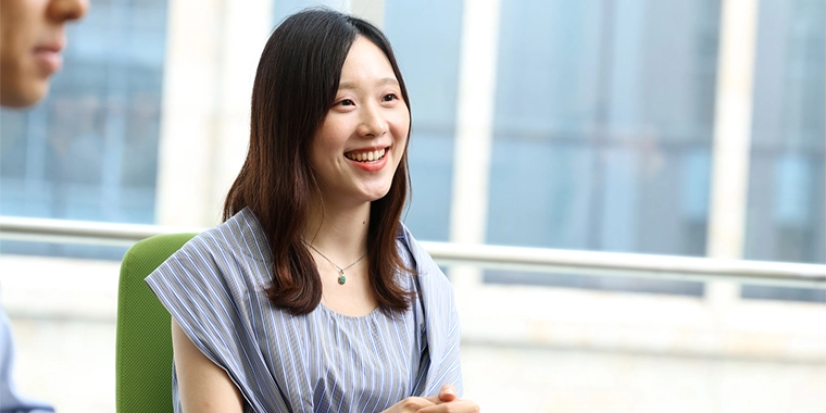 留学直後に受けたTOEICのスコアは895で、オンライン英会話を1年続けた後にスコアが960までアップしたんです。継続して勉強することの重要性を再認識しました。そうした経験もあって、入社後もオンライン英会話のコースを受講しようと考えたんです。 -