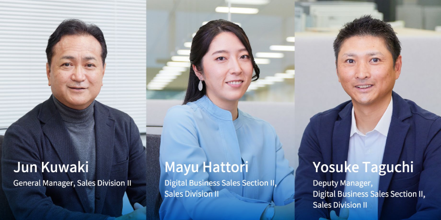 A collaboration was launched in October 2021 with a focus on the digital vision of Fujitsu and Tokyo Century and leveraging their combined strengths. We discussed this initiative with two employees currently seconded to FLCS Co. Ltd.*, Mayu Hattori from Fujitsu and Yosuke Taguchi from Tokyo Century. We also interviewed Jun Kuwaki, General Manager of Sales Division II, who was transferred from Fujitsu to work in the same division as our other two interviewees.