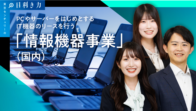 The core strength of Tokyo Century’s business is our discerning eye—that is, the ability to determine asset value. This feature explores how that power is demonstrated across six of Tokyo Century’s key business areas. This third article focuses on our IT equipment business in Japan, which offers diverse services that integrate finance and IT. We spoke with Manami Shimizu and Daichi Soejima from the IT Equipment Business Division I, and Tamaki Hasegawa from the IT Equipment Business Division II, to explain these services.