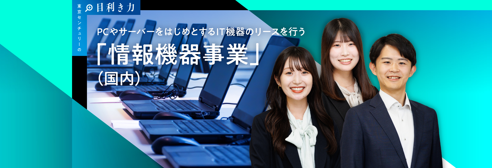 東京センチュリーの事業の核となっているのが、モノの価値を見極める力、すなわち「目利き力」です。この連載では、東京センチュリーが提供している6つのプロダクトにおいて、どのような「目利き力」が発揮されているのかを探っていきます。第4回は、情報機器事業(国内編)です。本事業では、ファイナンスとITの知見を融合した各種サービスを国内で提供しています。それらの内容について、情報機器第一部の清水さん、副島さん、情報機器第二部の長谷川さんに聞きました。